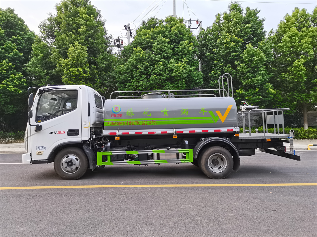 灑水車性能特點:前沖(噴)后灑,帶側噴,罐體后帶工作平臺,平臺上安裝綠化灑水炮,灑水炮可360旋轉,可連續調成直沖狀、大雨、小雨、毛毛雨,帶安全護欄,配備全國質量評比**名的杭州威龍大功率專用  灑水泵,泵可自吸自排,安裝過濾網,帶消防接口,可通過消防栓進水,帶自流閥,隨車選裝20米綠化卷盤,可噴灑農藥。