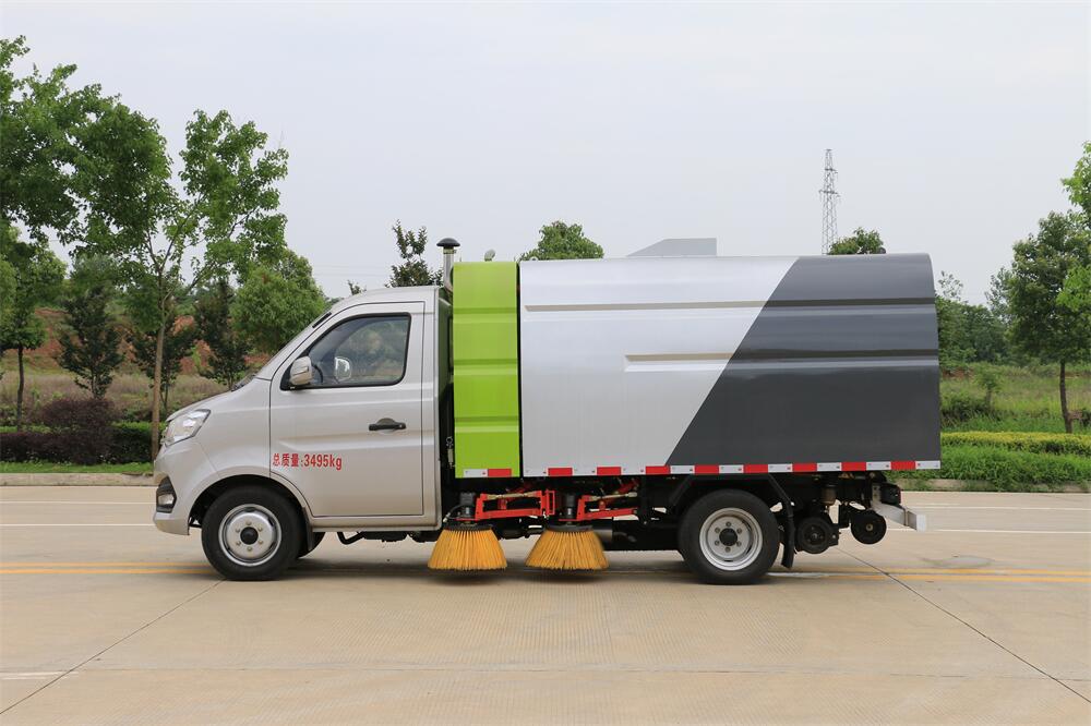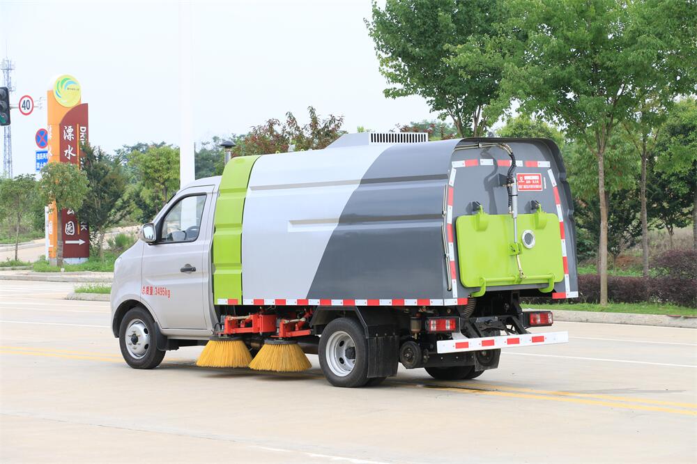1.采用吸掃混合的方式收集垃圾,濕式除塵、電液,液壓傾翻卸料的作業方式對路面進行清掃作業。