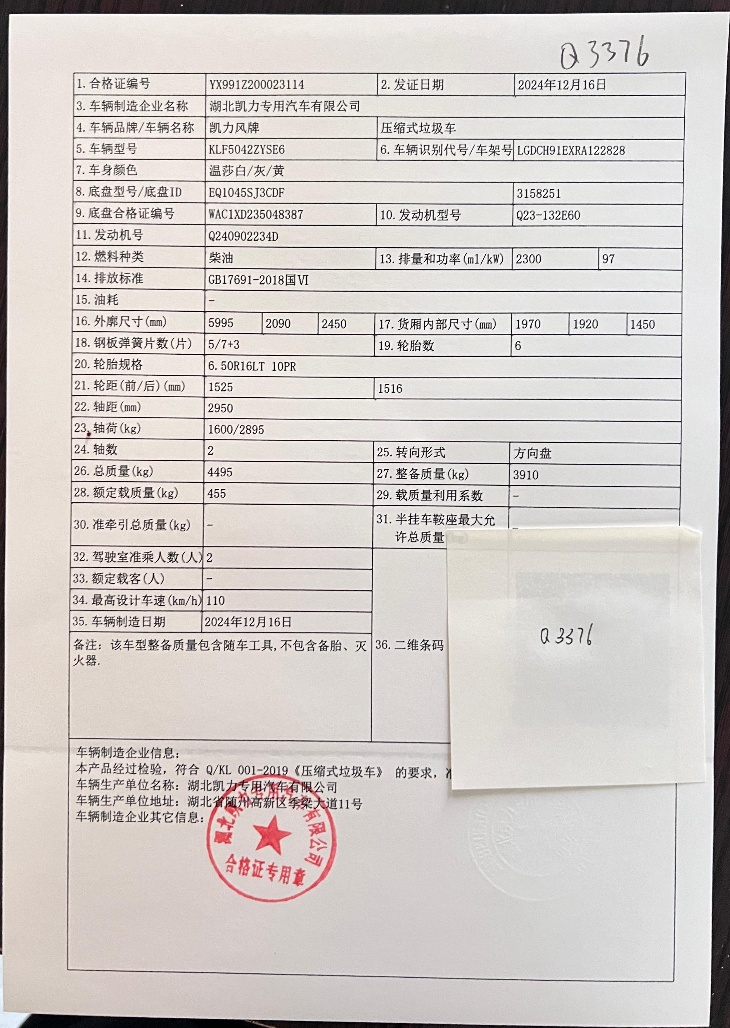 6.5方藍(lán)牌東風(fēng)壓縮垃圾車D5