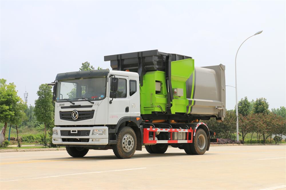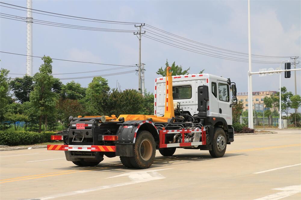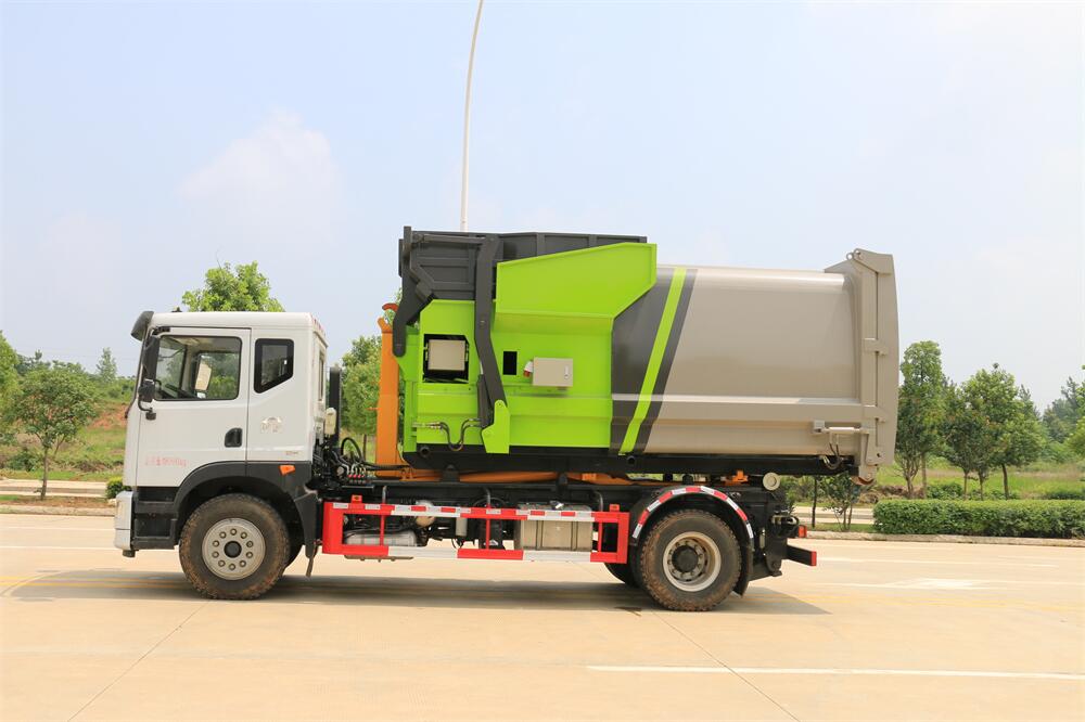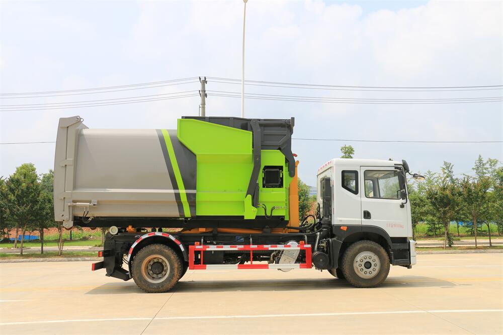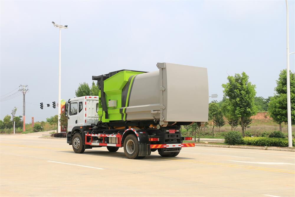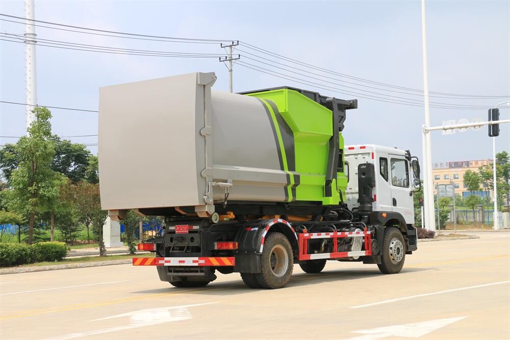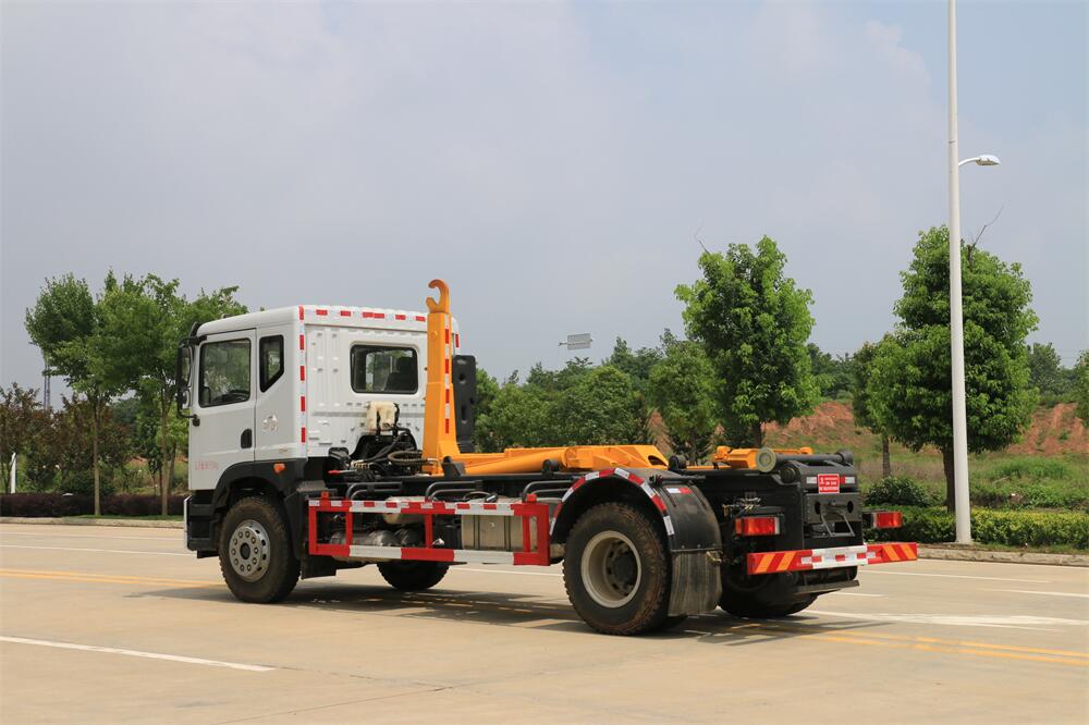 勾臂式垃圾車(車廂可卸式垃圾車)介紹: 車廂可卸式垃圾車又叫拉臂式垃圾車,是一種采用高新設(shè)計(jì)可伸縮的鉤臂,實(shí)現(xiàn)垃圾廂的二次吊裝,自吊上放下,可自行傾倒垃圾的環(huán)衛(wèi)設(shè)備。 拉臂式垃圾車結(jié)構(gòu)簡(jiǎn)單,操作穩(wěn)定方便,裝卸效率高,機(jī)械化程度高,節(jié)省人力。鉤臂垃圾車一車可帶多個(gè)垃圾廂,在裝卸的運(yùn)輸過(guò)程中可有效地避免二次污染。 拉臂垃圾車采用高新設(shè)計(jì)可擺動(dòng)的鉤臂,垃圾箱由框架、開(kāi)啟油缸、滑輪、后門和若干加強(qiáng)框架與鋼板焊接而成。調(diào)換貨廂快捷方便,貨廂上帶蓋(倒垃圾時(shí)可翻開(kāi)),鉤臂垃圾車?yán)鴰w可選用碳鋼、不銹鋼材質(zhì)、內(nèi)部采取環(huán)氧樹(shù)脂防腐處理,改裝部分與原車底盤為可分離式,維修方便且保持了原車的機(jī)動(dòng)性及行駛性能。