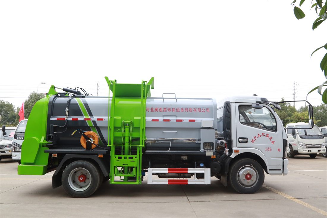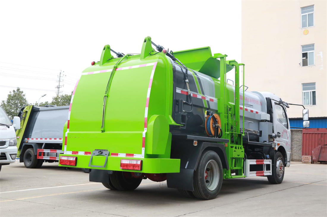 上裝配置:罐體容積8m3,配備120L/240L掛桶提升翻轉(zhuǎn)機(jī)構(gòu),液壓系統(tǒng),后蓋液壓鎖緊開啟,罐體可以舉升自卸,尾部帶自流閥;用于運(yùn)輸液態(tài)垃圾,其特點(diǎn)操作簡(jiǎn)單,密封性好,無泄漏,無異味;可選裝固液分離功能,推板擠壓功能,常用于餐館的垃圾轉(zhuǎn)運(yùn)處理。