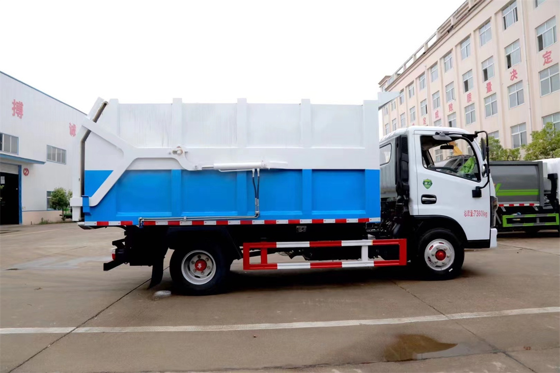 2、該垃圾車的收運方式是目前國內(nèi)廣泛采用的垃圾壓縮站垃圾轉(zhuǎn)運方式,可以實現(xiàn)一車多站,大大降低了配備成本和空間等等。