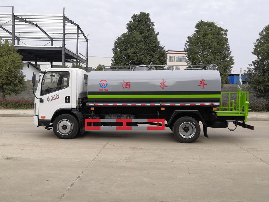 灑水車性能特點:前沖(噴)后灑,帶側噴,罐體后帶工作平臺,平臺上安裝綠化灑水炮,灑水炮可360旋轉,可連續調成直沖狀、大雨、小雨、毛毛雨,帶安全護欄,配備全國質量評比**名的杭州威龍大功率專用  灑水泵,泵可自吸自排,安裝過濾網,帶消防接口,可通過消防栓進水,帶自流閥,隨車選裝20米綠化卷盤,可噴灑農藥。