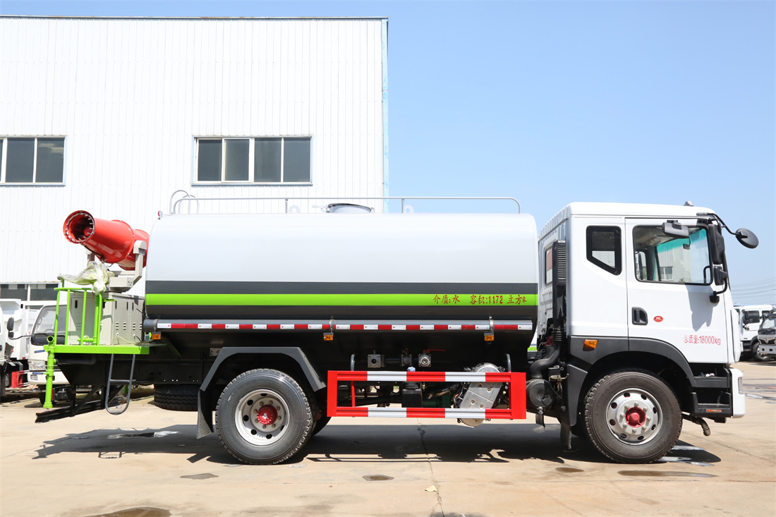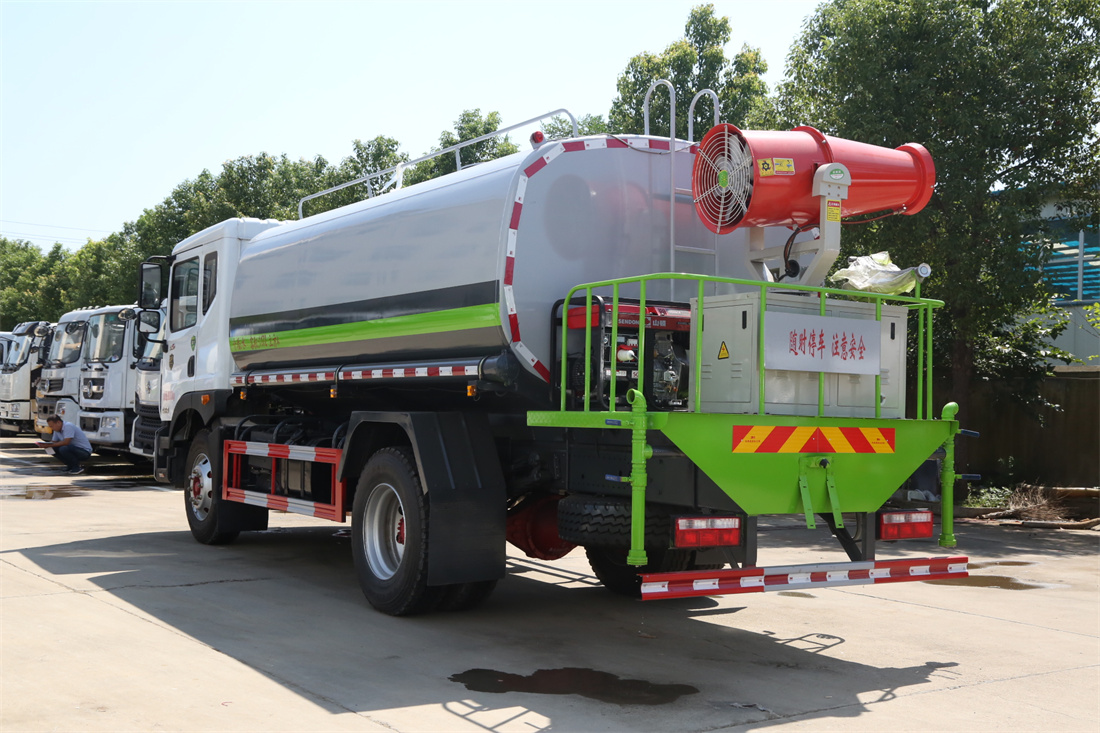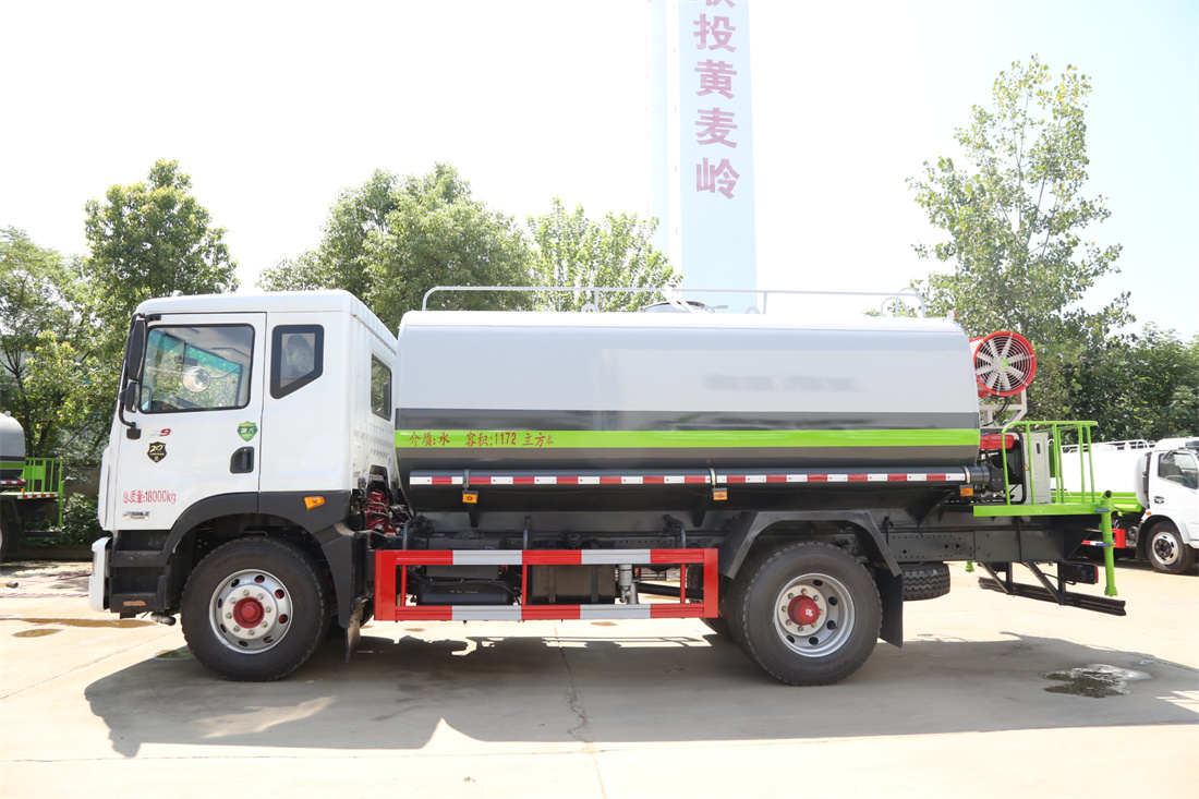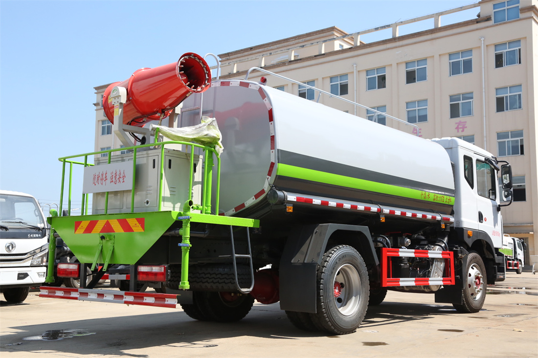 上裝配置:罐體容積 12-15立方,風送式霧炮機組30米,40米選擇,罐體采用國標Q235碳鋼材質,罐體厚度4MM,前后封頭5MM加厚型,罐體內雙層隔板具有防波蕩作用,以減輕汽車行駛時罐內液體沖擊;灑水車整車及外形尺寸嚴格按照**機動車公告制作而成;裝配大功率專用灑水泵,前沖、后灑、側噴、后平臺帶綠化灑水炮,灑水炮可全方位旋轉,可連續調成直沖狀、大雨、小雨、毛毛雨;配消防接口,自流閥,濾網,帶自吸自排功能。前封頭帶水位計,后平臺主管路帶1寸澆花接口,后爬梯,帶1個消防接頭,帶1個自流閥,1個過濾裝置,其余標配。