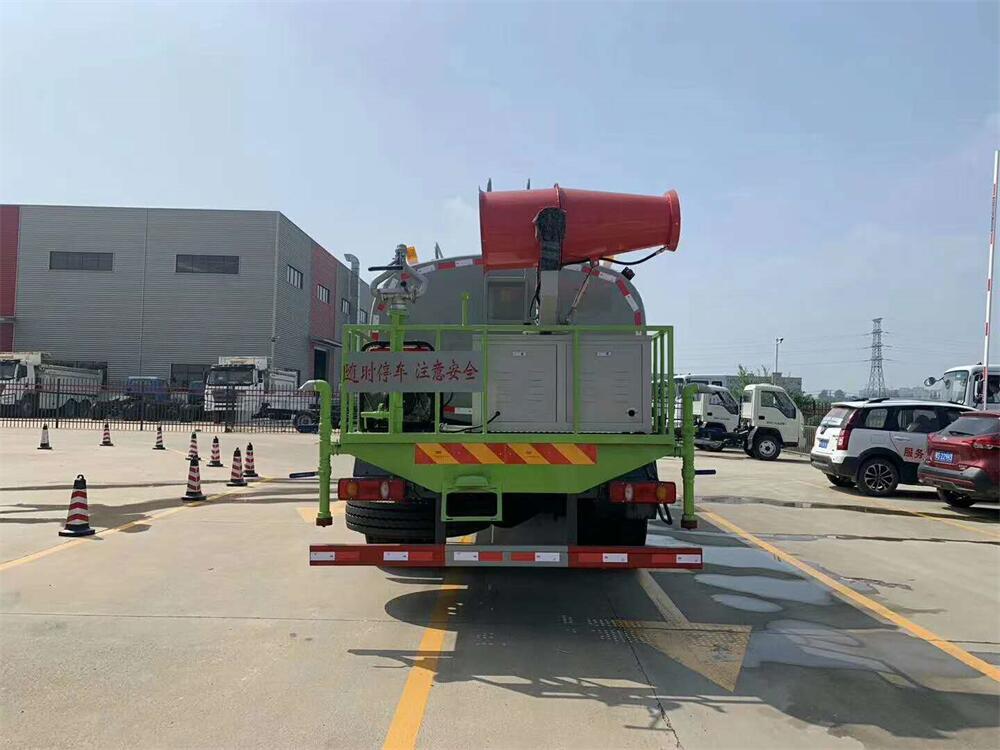 上裝配置:罐體容積 12-15立方,風送式霧炮機組30米,40米選擇,罐體采用國標Q235碳鋼材質,罐體厚度4MM,前后封頭5MM加厚型,罐體內雙層隔板具有防波蕩作用,以減輕汽車行駛時罐內液體沖擊;灑水車整車及外形尺寸嚴格按照**機動車公告制作而成;裝配大功率專用灑水泵,前沖、后灑、側噴、后平臺帶綠化灑水炮,灑水炮可全方位旋轉,可連續調成直沖狀、大雨、小雨、毛毛雨;配消防接口,自流閥,濾網,帶自吸自排功能。前封頭帶水位計,后平臺主管路帶1寸澆花接口,后爬梯,帶1個消防接頭,帶1個自流閥,1個過濾裝置,其余標配。