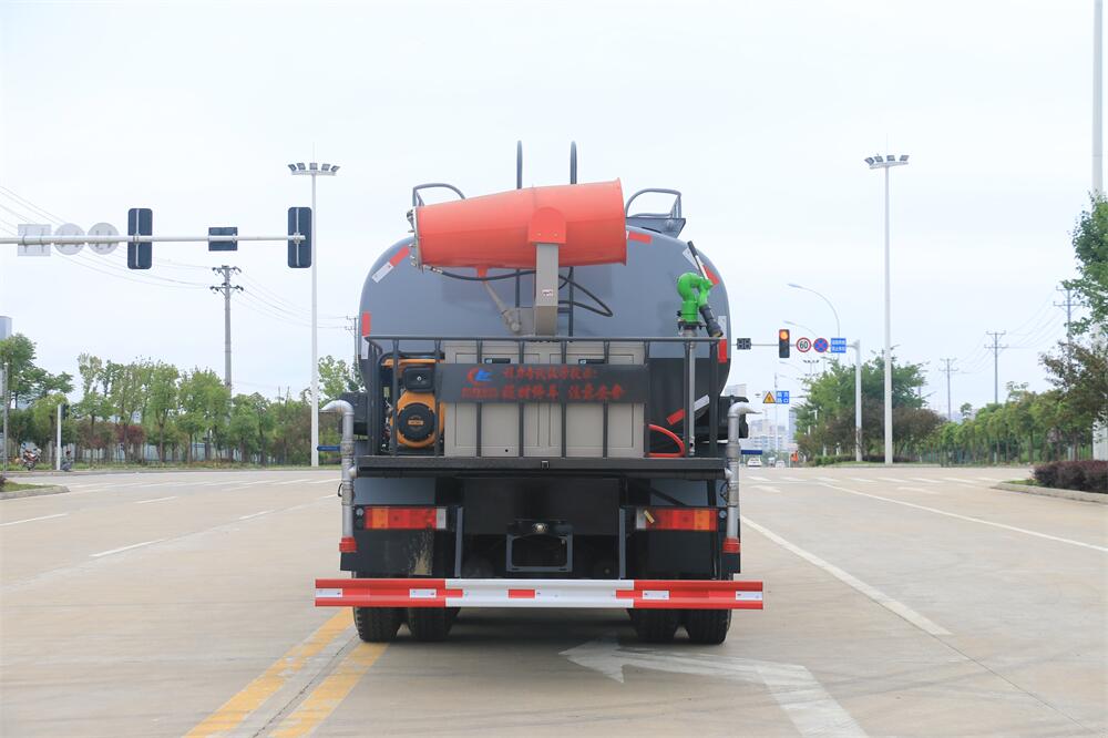 主要由發動機帶動變速箱,變速箱上安裝的取力器帶動灑水泵,灑水泵產生動力,將罐體內部的液體通過管網噴灑出去。工作范圍:自吸高度:≥7m,灑水寬度:≥14m,**大射程:≥28m;可調節成柱狀,射程≥28m;也可調節成霧狀,射程≥5m。