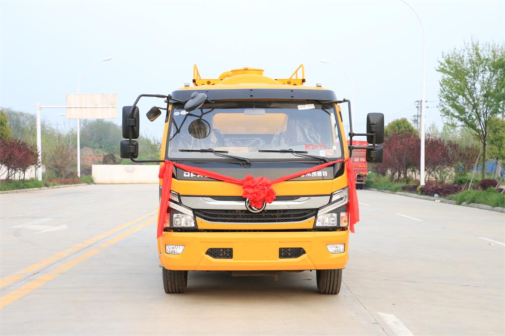 上裝配置:清水罐 3 立方,污水罐 7 立方; 清洗部份采用天津通潔,品孚,雙耀高壓泵, 壓力 24Mpa,流量 215L/min,配 60 米直徑 19 高壓管帶卷盤;吸污部份采用山東 SK-12 水循 環泵,高壓泵帶汽吹水。吸污罐帶舉升,后蓋 液壓開啟,罐體后尾部一個 DN150 排污口球 閥,一個 DN100 進污口球閥,一個視污窗,一 根 8m 吸污管,一套陰陽端,壓力表,防溢閥, 淋管裝置,高壓泵帶氣吹水。配 10 個組合噴 頭,另帶一個 60 公分手持洗車噴頭。