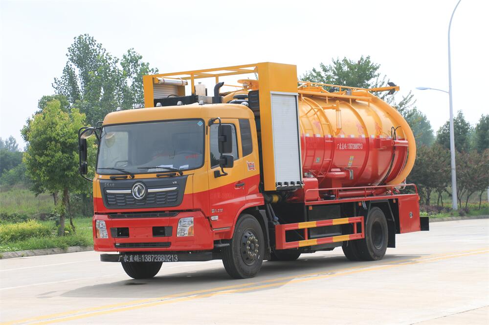 15方15方清洗吸污車-東風(fēng)天錦15方10+5清洗吸污兩用車-帶副發(fā)動機圓罐紅黃色