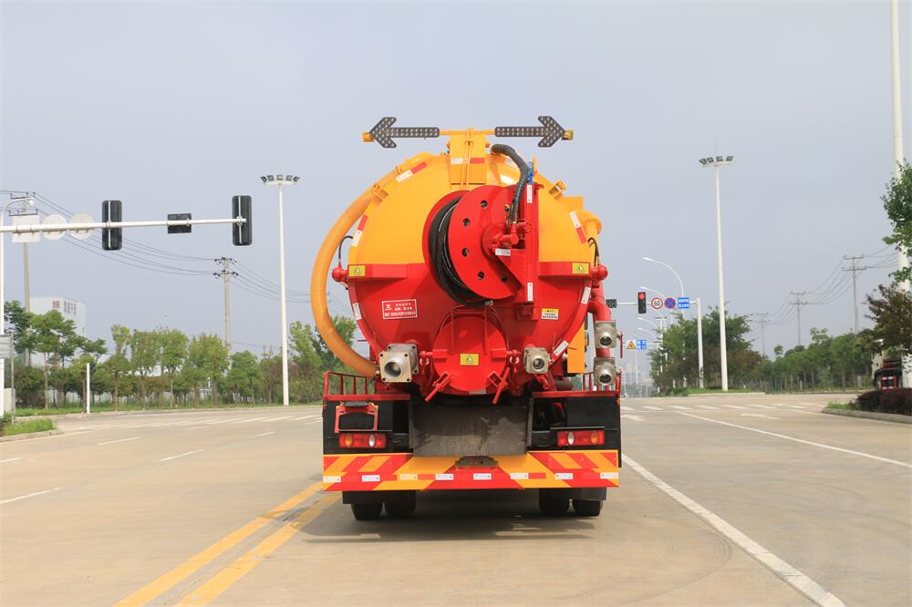上裝配置:清水罐約 5 立方,污水罐約 10 立 方;罐體 8mm 厚,封頭 8mm 厚,水罐、污罐可 互通,用 100 球閥**開關(guān);清洗部份采用天 津通潔高壓泵,壓力 19Mpa,流量 215L/min, 配 80 米直徑 22 高壓管帶液壓卷盤;吸污部份 采用濰柴375馬力副發(fā)動機帶山東SK-30水循 環(huán)泵(副發(fā)自帶),吸污罐帶舉升,后封頭焊 死(可選擇后封頭全開),尾部加裝一個 600mm 快開,罐體后尾部一個 DN150 排污口球閥,一 個 DN100 吸污球閥帶出口盤,一個視污窗,一 根 10m 吸污管,一套陰陽端,壓力表,防溢 閥,箭頭燈,工具箱,淋管裝置,高壓泵帶氣 吹水。配一個 4.5 公斤水雷噴頭,另帶一個 80 公分手持洗車噴頭。