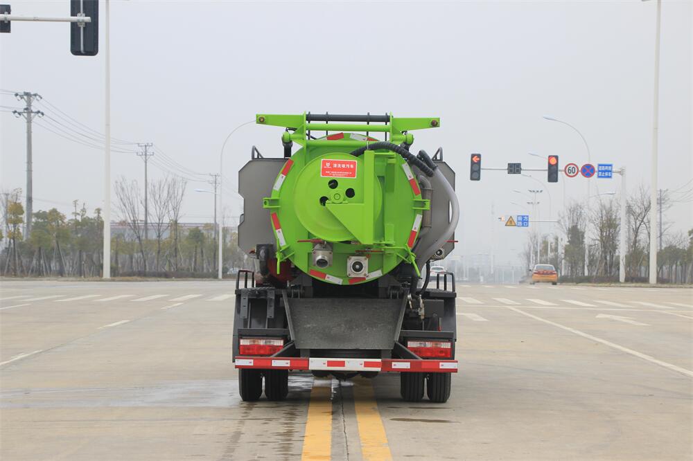 配置SK-9水循環泵(可選裝油泵、杭州威龍泵)國產天津240KG/170流量高壓泵(可選裝進口高壓泵),60米19高壓管,8米吸污管一根,十個高強度噴頭,后一個100進污口,一個150排污口,罐體可舉升,后蓋可液壓開啟,全套為液壓操控,加大工具箱、視糞窗上帶球閥,一個洗手小球閥、兩個消防接口、兩個泄壓閥、加寬平臺、防溢閥,真空泵帶油水分離器,帶洗手裝置,管道清洗裝置,冬季吹水裝置。