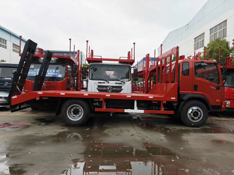 成都大運單橋平板運輸車 發動機:云內170馬力 變速箱:陜齒8檔變速箱 大梁:250雙層 輪胎:825R20/900R20 軸距:4.1/4.4米 整車對應尺寸:7570*2500*3050/7950*2500*2950 前后橋:9噸/10噸 車型亮點:ABS防抱死系統 .大燈高低調節. 剎車間隙自動調整臂. 防飛濺.,原廠空調,中控鎖、電動門窗,可拉15噸挖機拖車。可定制雙節液壓折疊爬梯,拉15噸以下推土機,攤布機,鉆井設備,小轎車等等工程機設備。 上裝采用5毫米花紋鋼板,120*120方鋼做橫梁,加強型雙爬梯.可定做液壓爬梯,可承載15噸以下挖機。也可加裝絞盤,可拉事故車等。公告拓展有雙節爬梯公告,可做雙節爬梯拉叉車,壓路機等鉆井設備! 可選裝配置:液壓全自動爬梯,折疊型加長型液壓全自動爬梯,可加裝兩邊伸展,一邊可伸縮30公分。