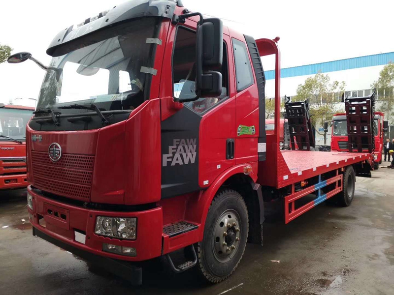 解放J6平板運輸車 J6平頂新款駕駛室 排放:國五新規 發動機:錫柴180馬力 變速箱:陜齒8檔 前后橋:145后橋 可選軸距:5米軸距 輪胎:9.00R20 大梁:250雙大梁 整車對應尺寸:9000*2500*2850 車型亮點:ABS防抱死系統 . 剎車間隙自動調整臂、防飛濺。 上裝采用五毫米花紋鋼板,120*120方鋼做橫梁,加強雙簧爬梯,可拉25噸以下挖機。 可選裝配置:液壓全自動爬梯,折疊型加長型液壓全自動爬梯,可加裝兩邊伸展,一邊可伸縮30公分。