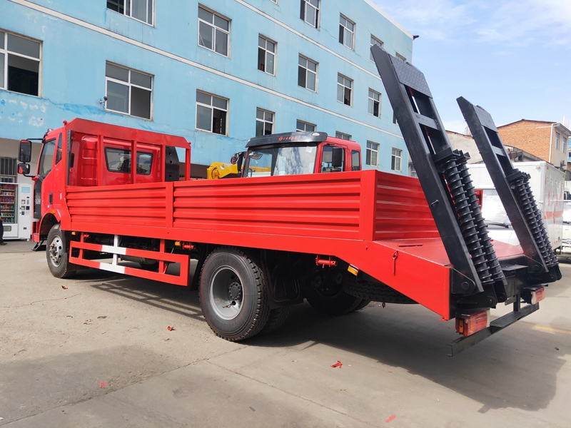 上裝采用五毫米花紋鋼板,120*120方鋼做橫梁,加強雙簧爬梯,可拉25噸以下挖機。